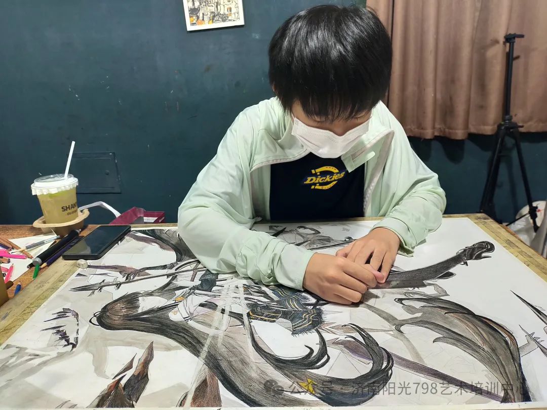 6、造型集训班 每位绘画大师都必定是一位素描大师,离开素描就没有大师。画家安格尔说过:除了色彩,素描就是一切”。素描是一种绘画方式,又是绘画的基础,也是一种十分重要的艺术形式。它注重线条表现方式,以线条的粗细轻重来描述物体的明暗深浅,并且不须顾虑物体细节的色调色值,画面借由明暗光影的衬托来突显主题。大多数画家在从事一幅油画或壁画之前,会先绘画雏型,而这个简单几笔的雏型画,便是素描。我校暑假造型集训班使用小班制原则,包含素描、水粉、速写(采用真人模特进行写生)的课程。本班主要针对初中升高中、高中升大学的相关艺术考试而开设,由专业院校毕业的一线老师进行系统授课。本课程在短期内通过了解孩子现阶段的能力,有针对性的进行高强度训练,让孩子在艺考这条路上能够稳扎稳打。