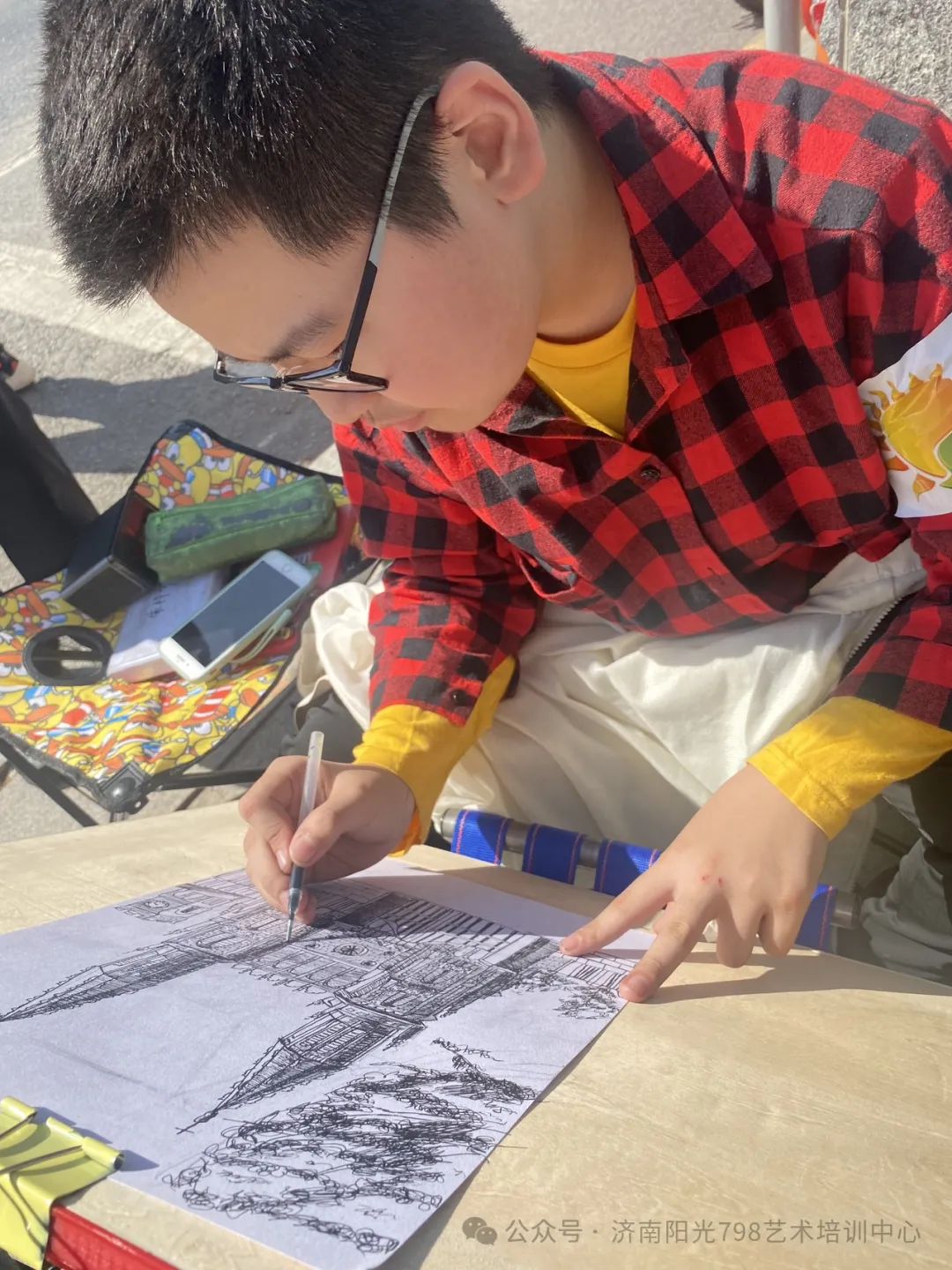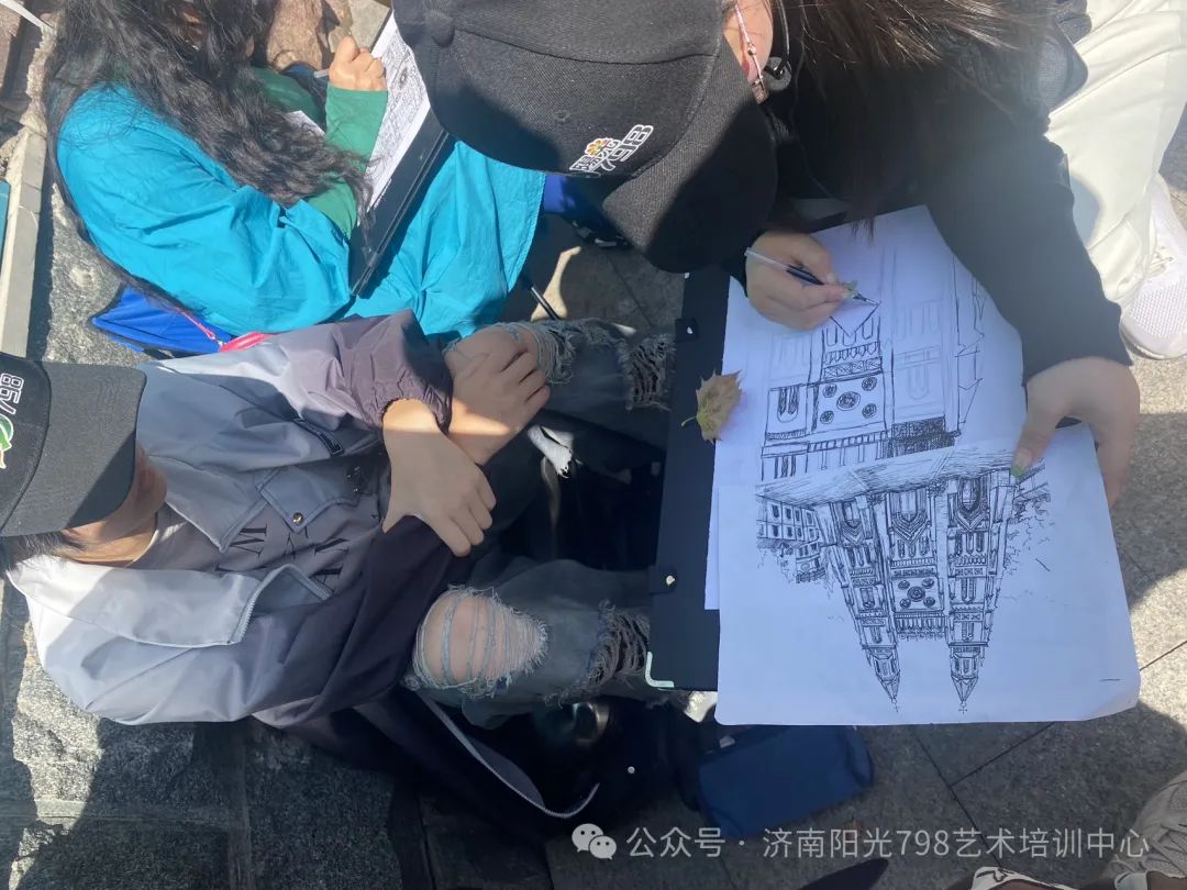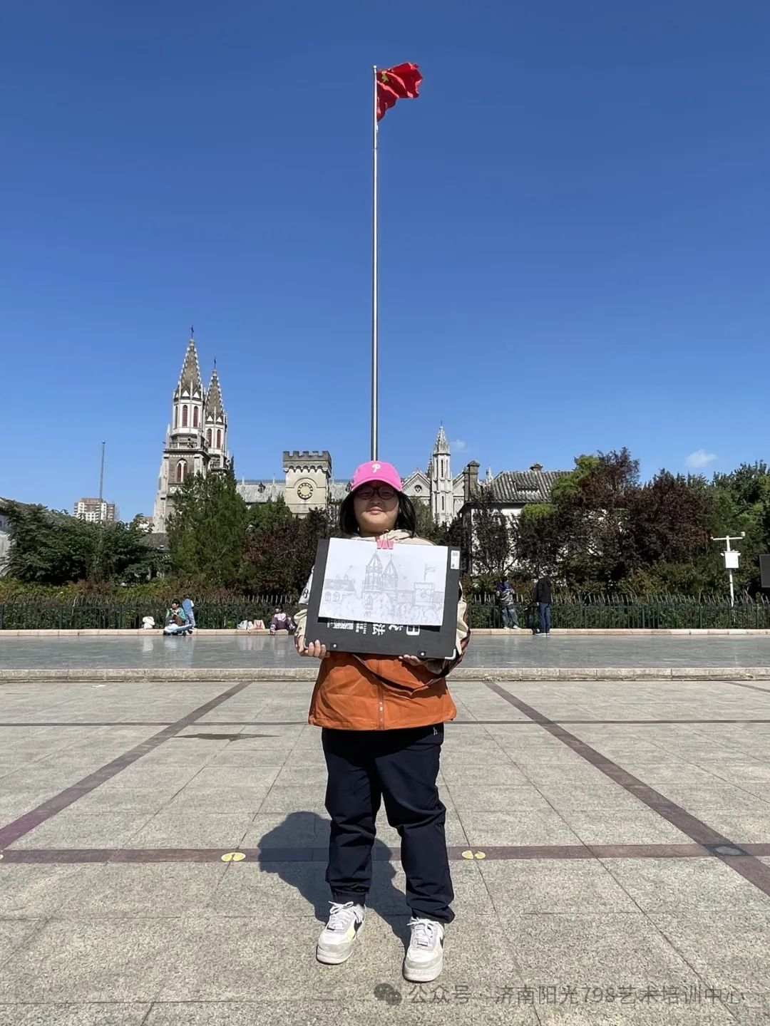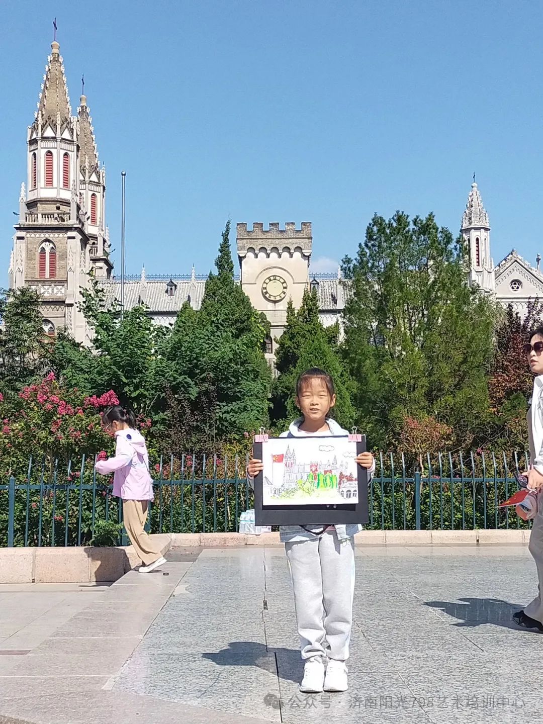 十月一日, 不需出远门, 去收获哥特式建筑庄严、肃穆、伟丽之美 洪楼教堂为双塔哥特式建筑, 教堂以洪家楼村而得名, 整座建筑给人气势如虹、精雕细刻、富丽堂皇之感。 ![]() 写生的过程是孩子观察、分析、理解、概括的过程,与模仿作画有着本质上的区别。孩子将自己的观察和思维概括地表现出来,这就是一种创造。