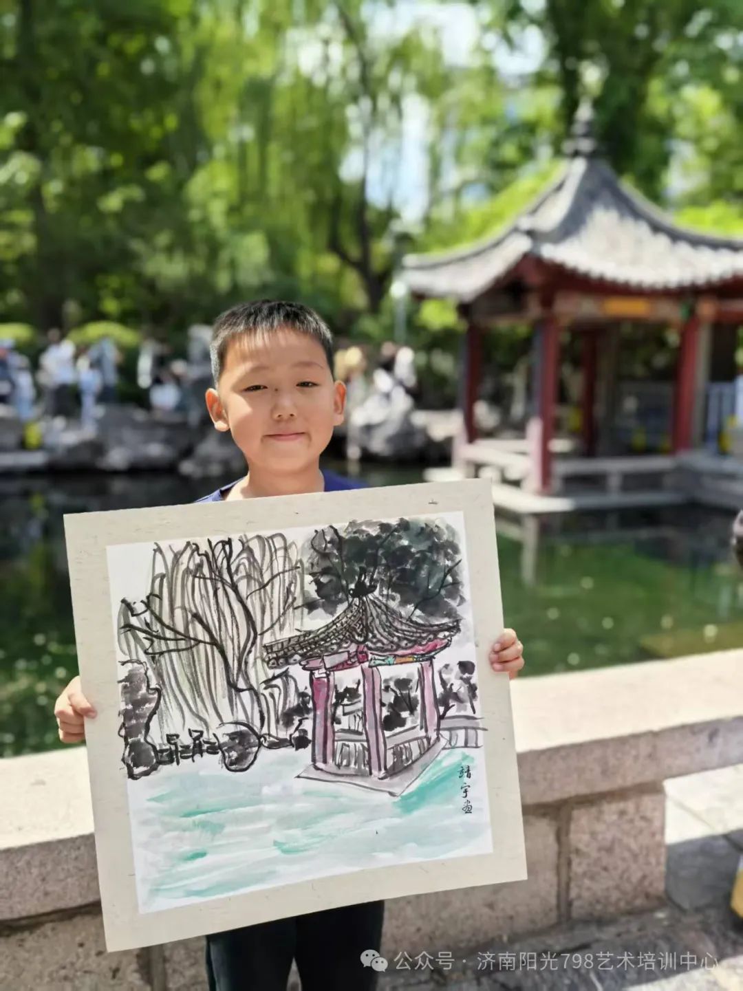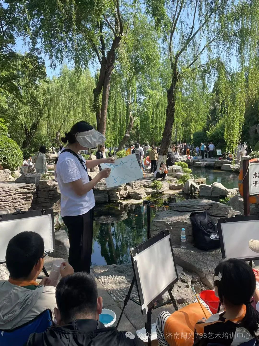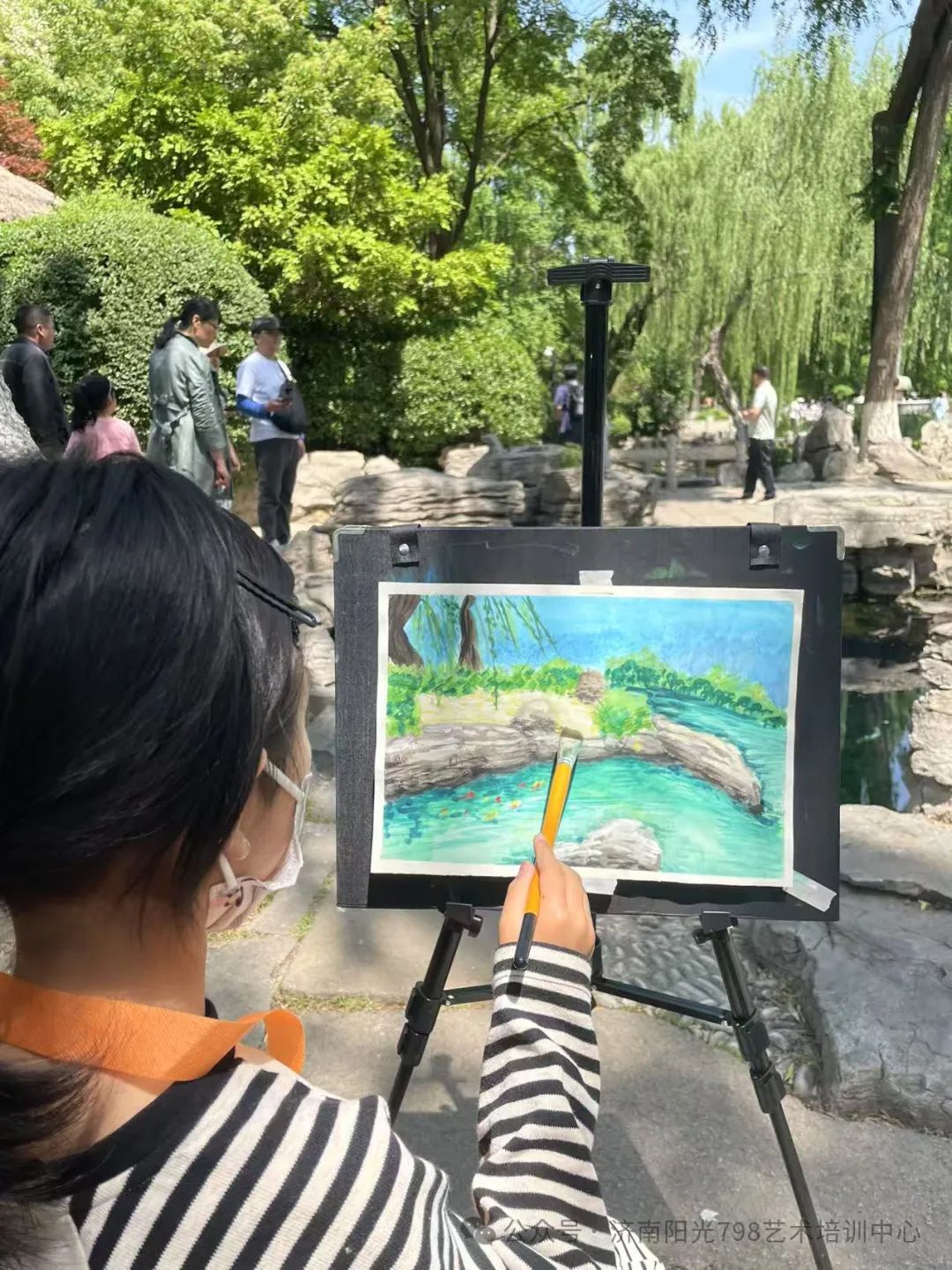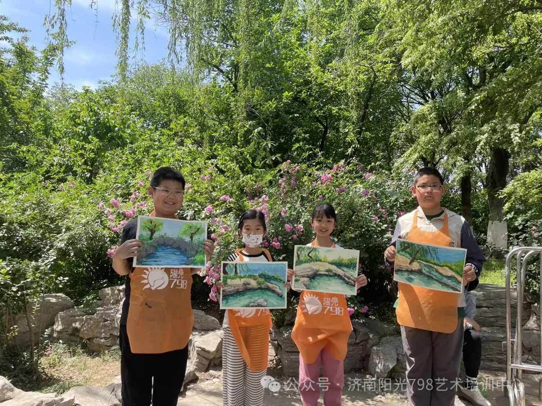 五月一日,阳光798的师生们走进济南五龙潭,以画笔为媒,与自然对话,潭边飞溅的泉沫、斑驳的树影、古朴的亭台。