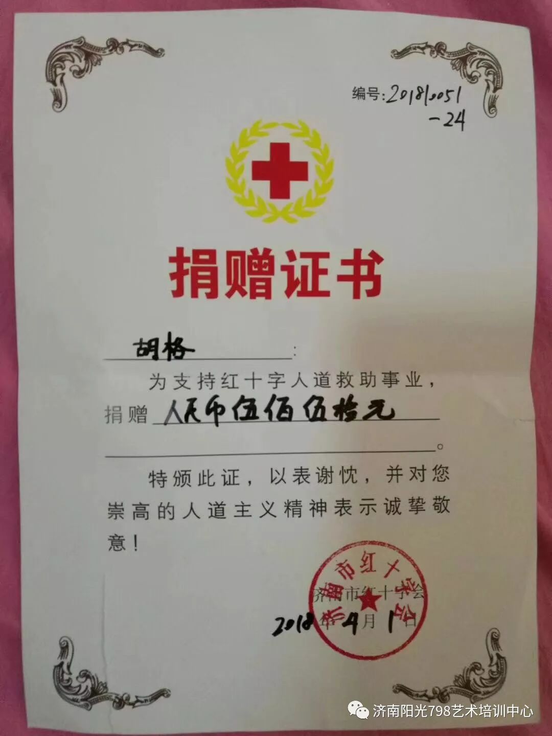 济南市红十字会处长张进给拍卖小画家、小书法家、拍买得主颁发捐赠荣誉证书并合影留念!